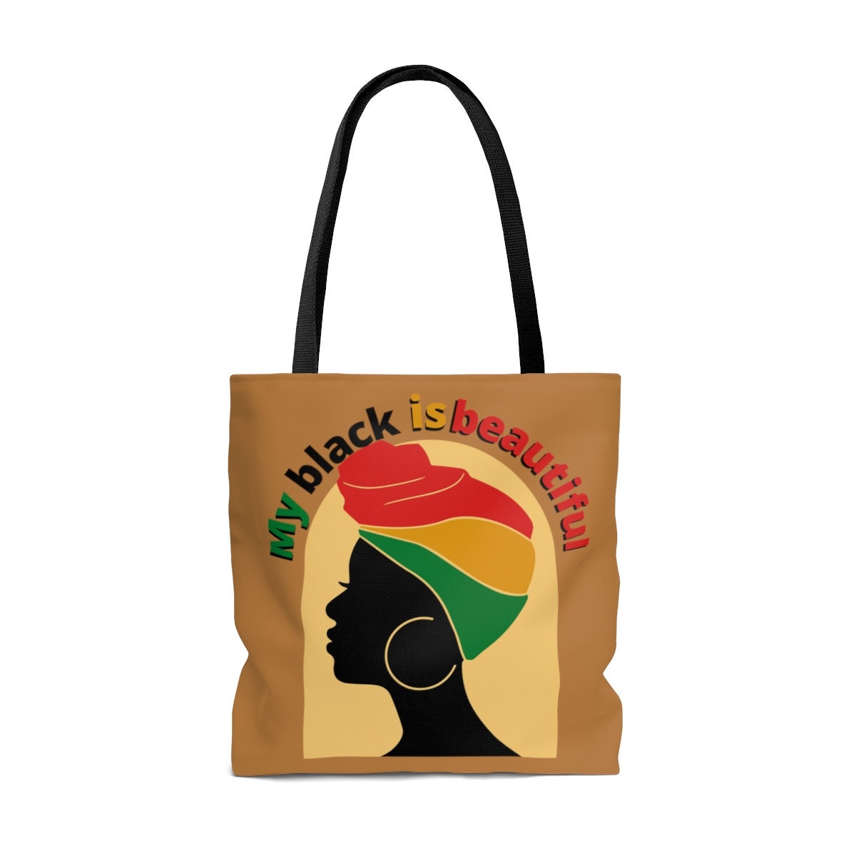 This My Black is Beautiful, high-quality Tote/Shopping Bag in brown is available in three sizes. It provides practical comfort with style at the beach or out in town. Perfect gift for the woman of color in your life.
