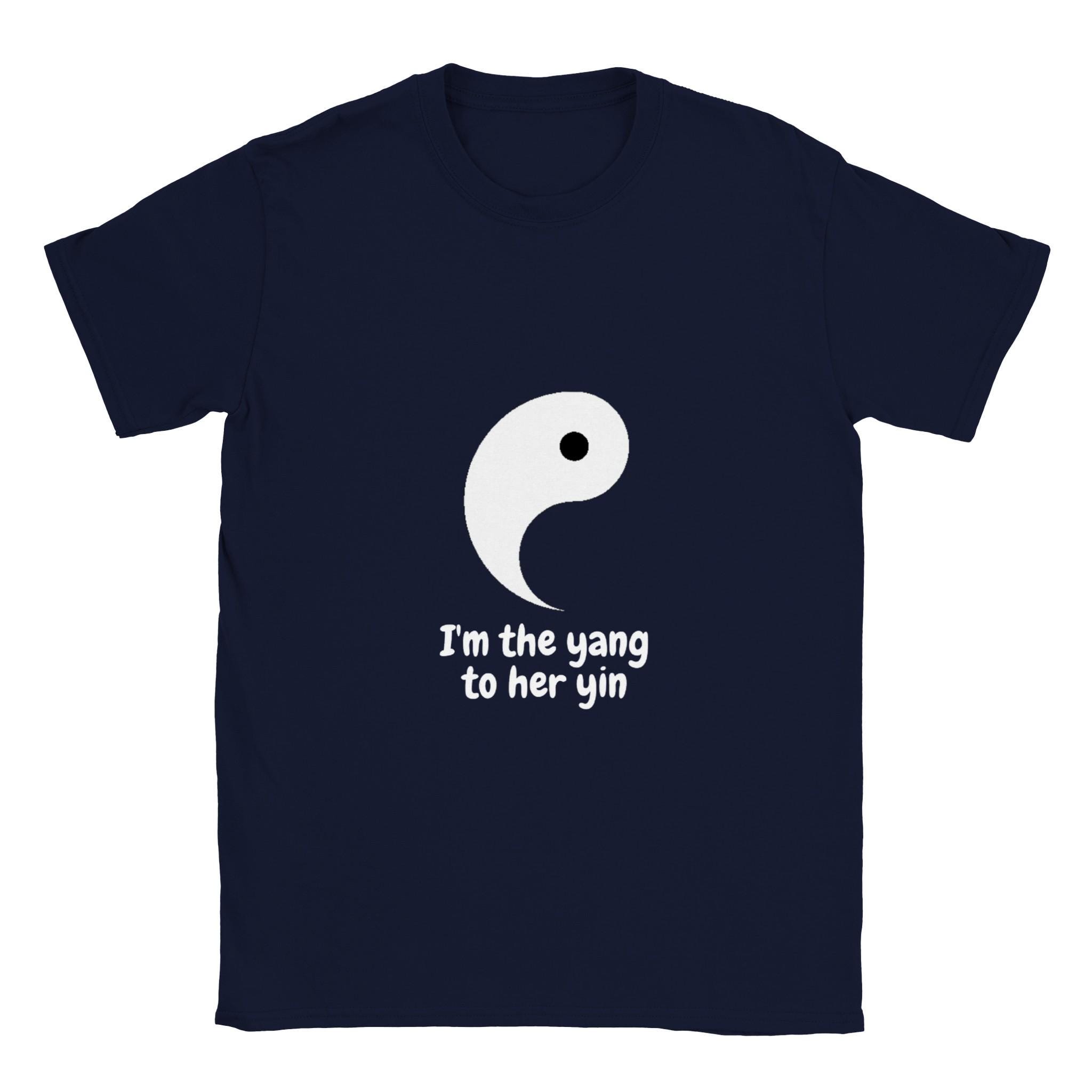 This I'm the Yang to Her Yin is the guy half of the couple's duo Yin & Yang. A t-shirt that works well with any outfit and perfectly pairs with the I'm the Yin to his Yang t-shirt. It's great for Valentine's Day or a couple's night in the town. Made of a heavier cotton with a double-stitched neckline and sleeves.